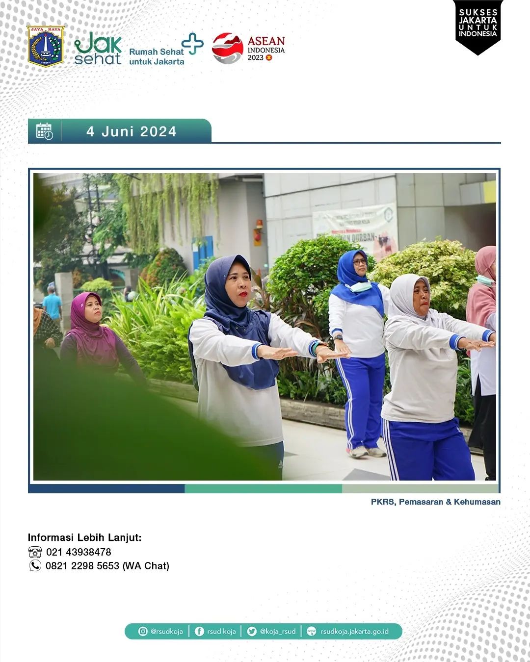 Jam besuk pasien rawat inap adalah pukul 11.00-12.00 WIB dan 17.00-19.00 WIB setiap hari. Jumlah pengunjung dibatasi maksimal 2 orang per pasien.